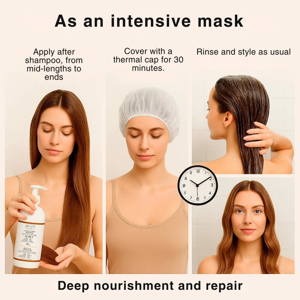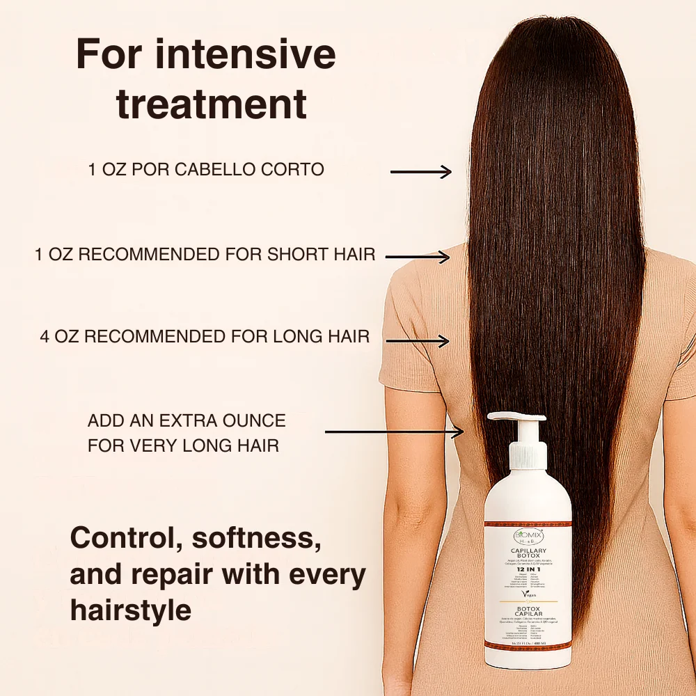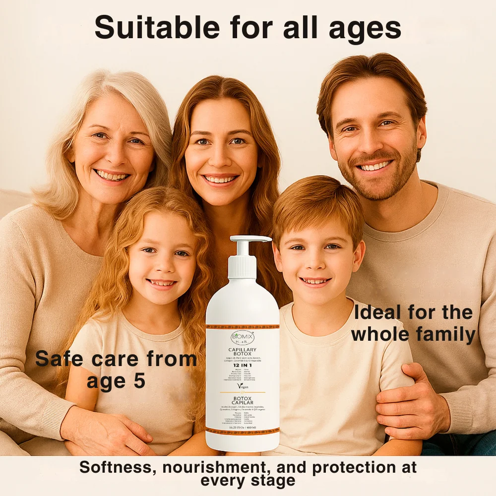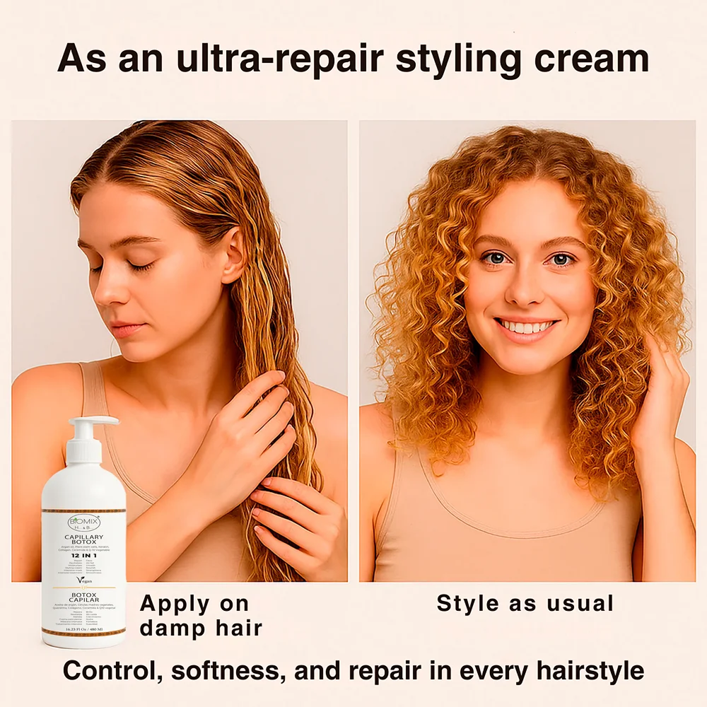 Botox Capilar Vegano Hipoalergénico Keratina, Colágeno, Aceite de Argán, Células Madres Vegetales, Vitaminas - Tratamiento Capilar 12 en 1 Intensivo 480 Ml