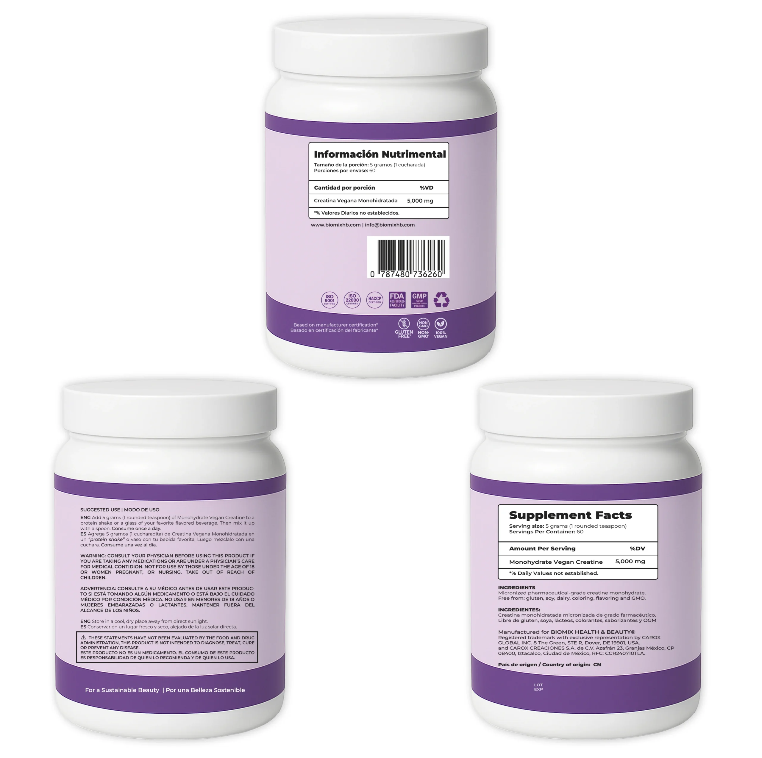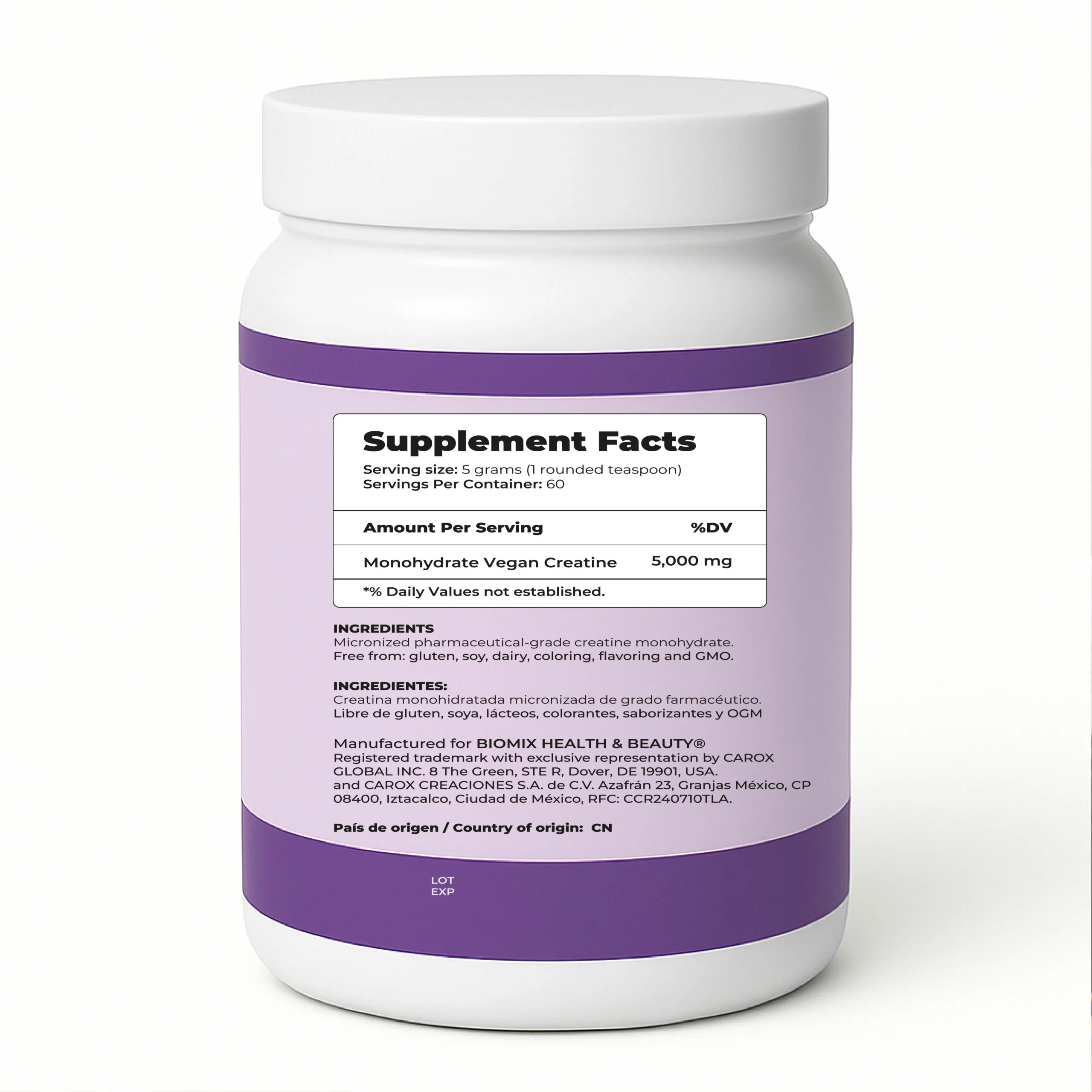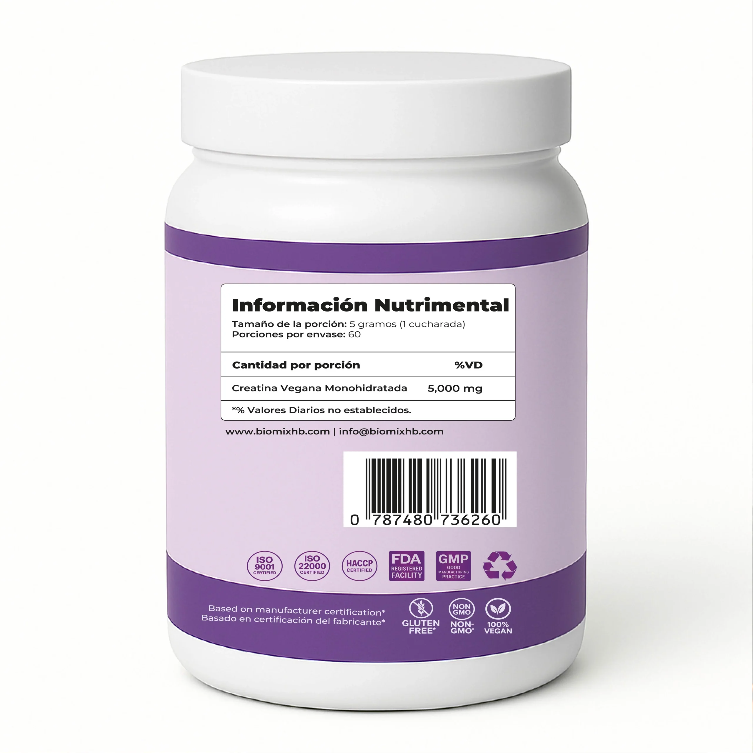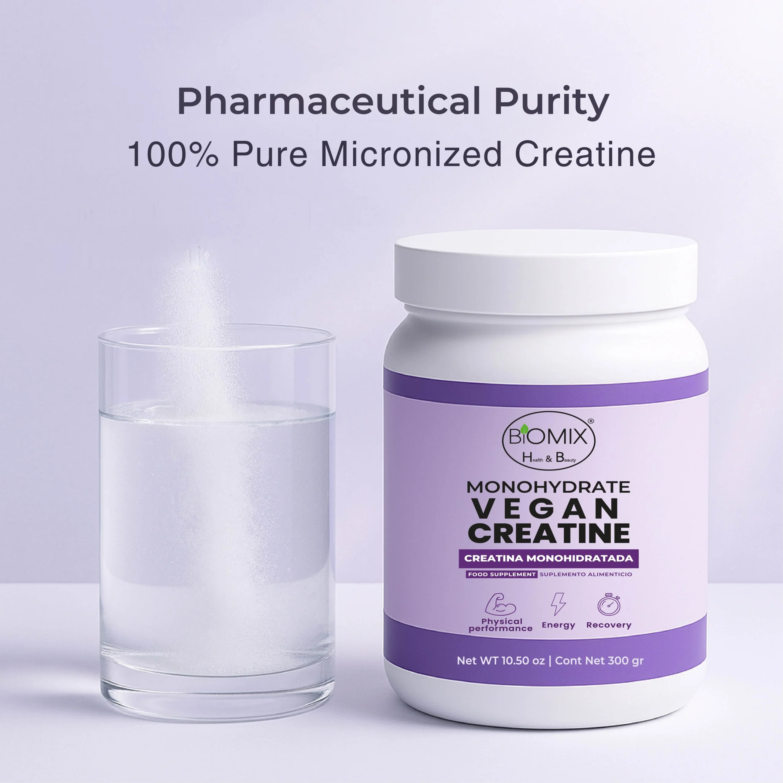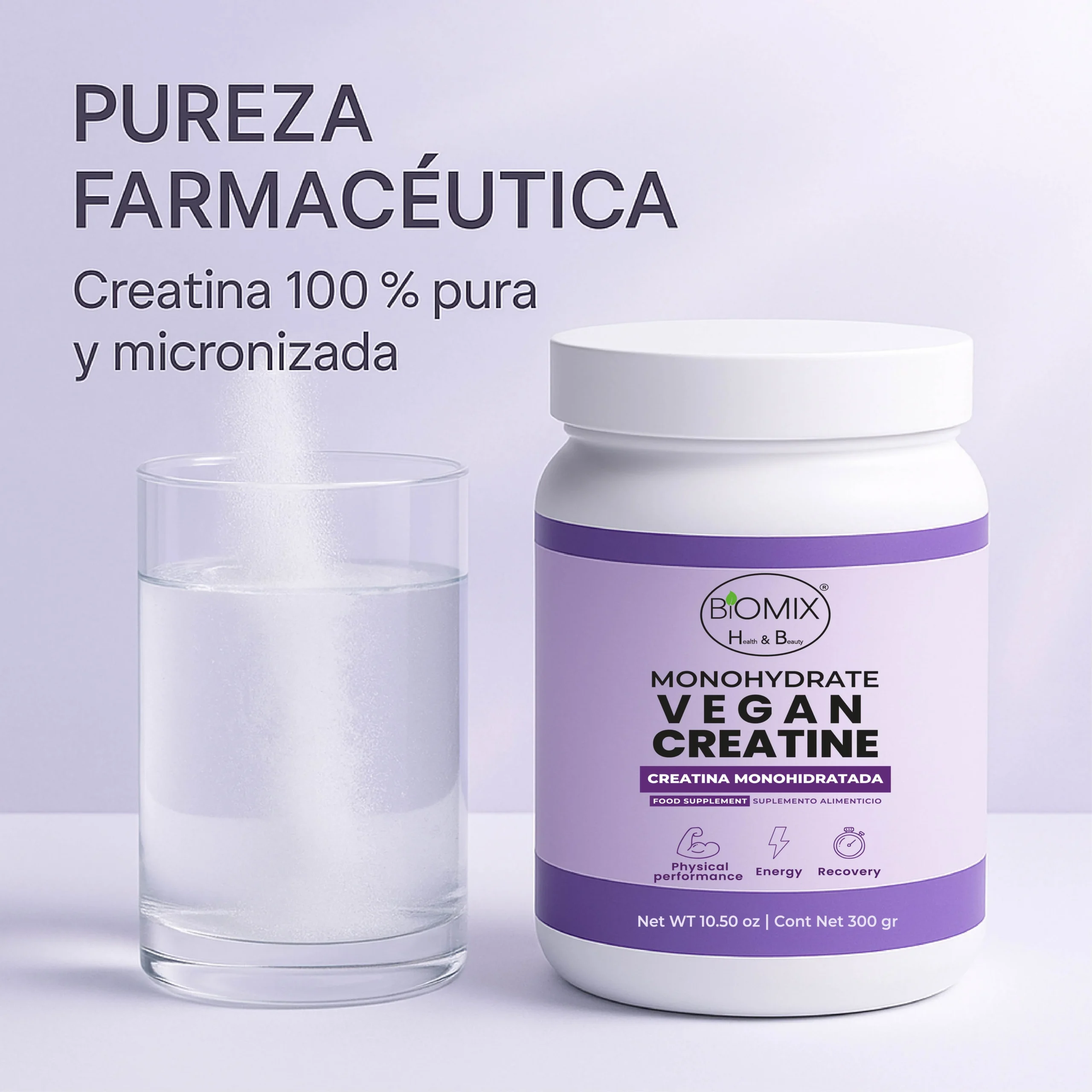 Descubre la nueva era del rendimiento físico con Biomix Health & Beauty. La Creatina Micronizada Vegana Monohidratada Pura está formulada con grado premier 2X, diseñada para ofrecer resultados visibles, sostenibles y seguros.